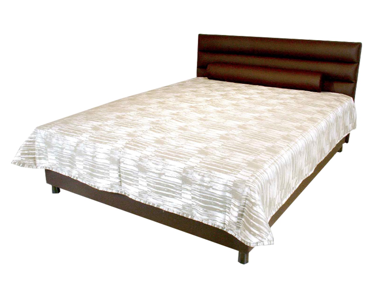 Szögletes fejvégű masszív franciaágy rugós kivitelben, henger alakú díszpárnákkal. Igény szerint dekor ágytakaróval kérhető.